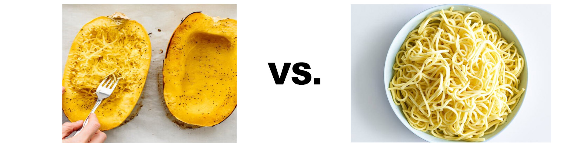 pasta has 3 times as much fat at 1.2 grams per cup! Cooked pasta has almost four times as many carbs at 38 grams per cup vs 10 grams with cooked spaghetti squash. The health benefits go on and on!